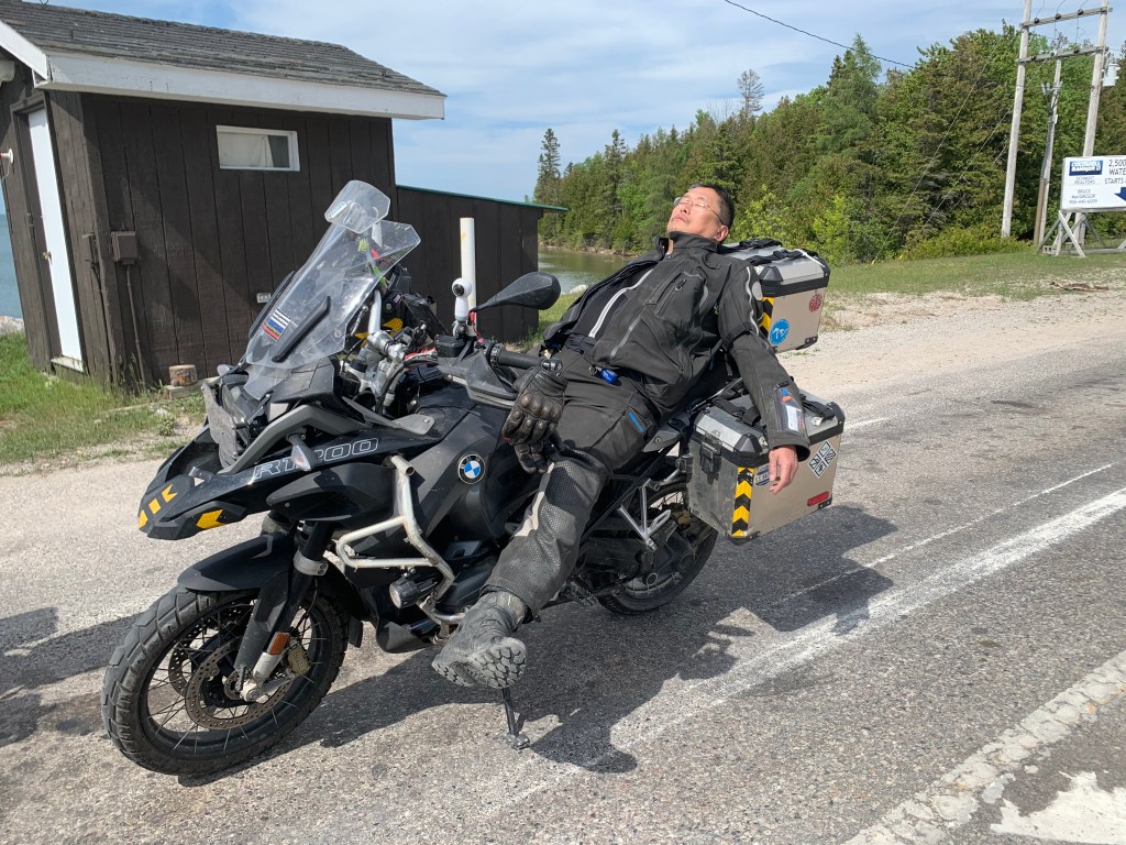 After this, we headed north to the Mackinaw bridge, with the goal of staying in Sault St. Marie for the first part of our trip. The ride across the bridge is always interesting, as it’s quite high above the water and often quite windy. But today it was clear and relatively calm. In fact the day was warm and that played a part in the minor misadventure we would experience.