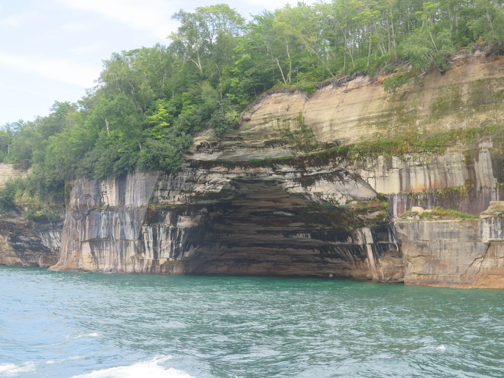 For the second half of our adventure we relocated to Houghton Michigan on the Keewenaw peninsula, which juts out into Lake Superior. The ride to Houghton took us via Munising and a visit to the Pictured Rocks National Lakeshore. All of the cliff formations along the shore of are stained with bright colors from the various minerals that wash out of the rock. The cliffs form dramatic shapes and are best seen from boat tours or kayaks offered for rent by local tourist shops. Sadly they were all closed due to Covid, so we hiked some scenic overlooks at the National Park.