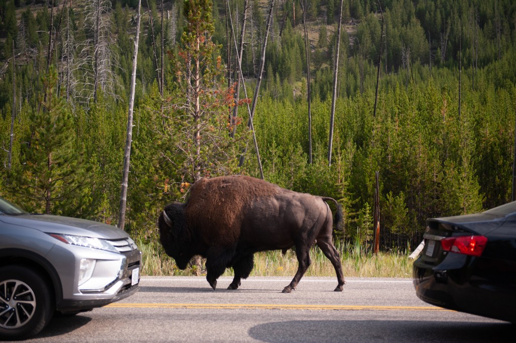During our first day in the park, I was amazed by how developed it is. While there are many miles of nearly empty and secluded wilderness, there are park amenities that I never expected. There are gas stations, an entire village with a post office, multiple souvenir malls and even a service station where you can get your oil changed! I must admit the development was a bit of a disappointment, but in exchange it was also a convenience. We could get fuel, snacks, and goodies pretty much whenever we wanted. What we could not get was a table in a restaurant. All the indoor dining was still closed due to COVID. Finding a table outside was a challenge sometimes, but we didn’t let the pandemic precautions get us down. At the Cody and West Yellowstone KOA campgrounds we stayed at, we were able to dine in at their outdoor grills.
